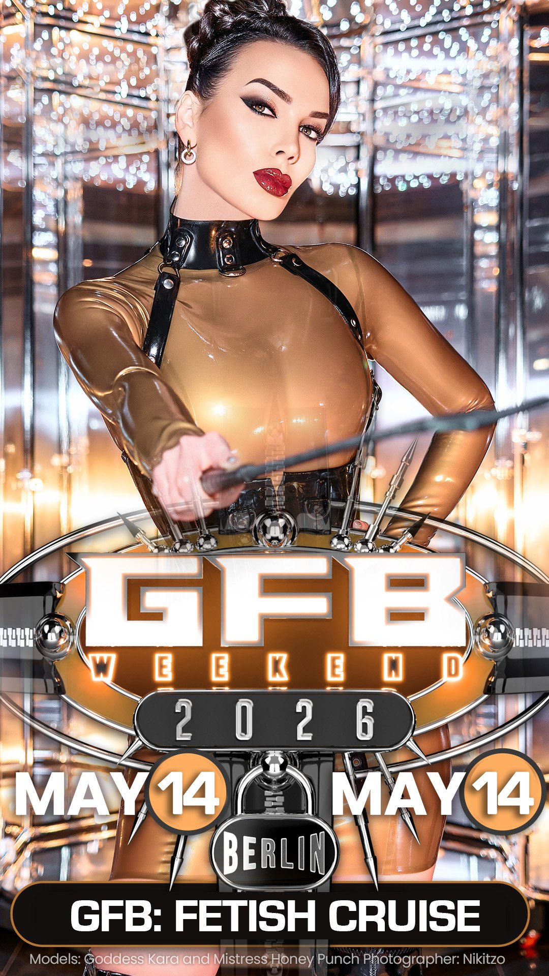 Veröffentlicht am: 26.01.2026Goddess Kara und Mistress Honey Punch sind die strahlenden Werbegesichter des GFB 2026 – Deutschlands größter Party. In goldenen Outfits glänzen sie auf jedem Ticket.